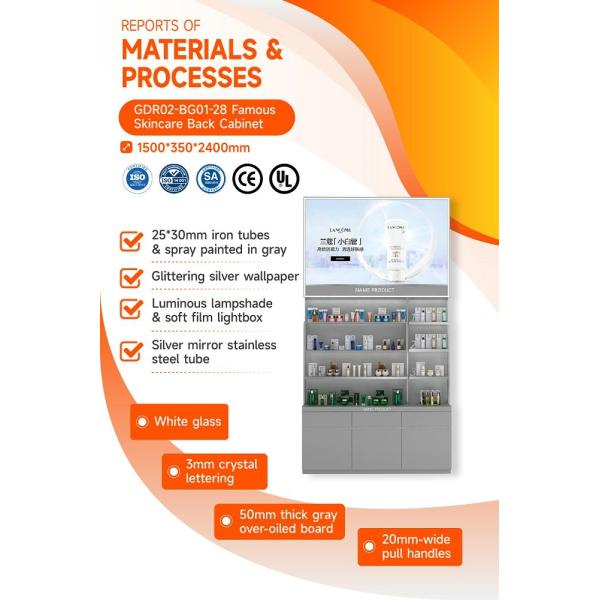 Layered Presentation: The internal layout of the display cabinet should be layered to avoid overcrowding, allowing each product to be fully showcased. For example, separate different cosmetic series or different types of products.