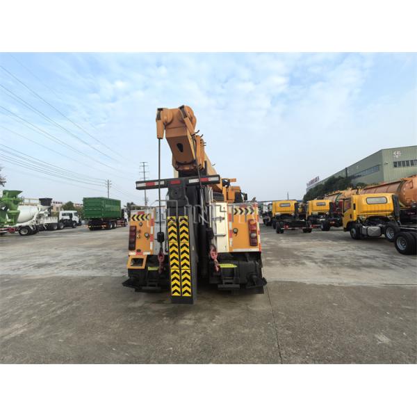 A "Wrecker Truck with Straight Arm Crane" combines the functions of a wrecker truck (used for towing or recovering vehicles) and a crane truck with a straight-arm (or boom) crane. The straight-arm crane allows for precise lifting, recovery, or loading of heavy vehicles or equipment in challenging situations where towing may not be sufficient.