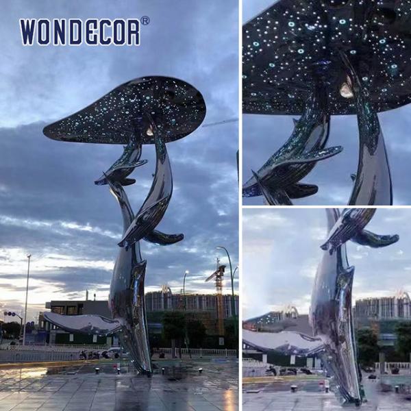 | product name | Large outdoor square cloud whale stainless steel fountain sculpture |