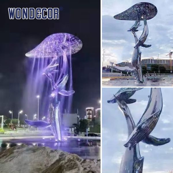 | name: | Large outdoor square cloud whale stainless steel fountain sculpture |