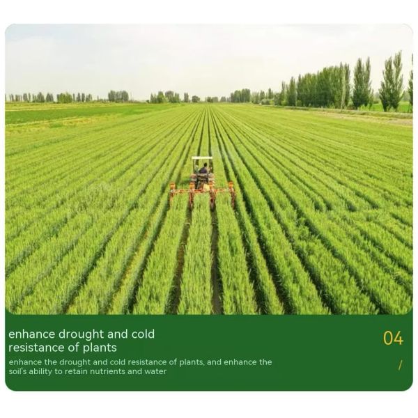 1) Improve soil condition and reduce salinity.2) Improve fertilizer efficiency and promote microorganism growth.3) Promote rooting and stimulate crop growth.4) Enhance the resistance of crops.5) Improve crops yield and quality.