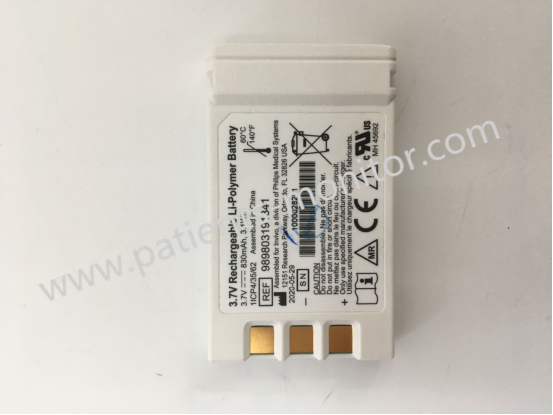 PHiliphh MR400 Rechargeable Li-Polymer Battery 989803191341 - The nominal voltage of this battery is 3.7V, which can provide stable power output for the adapted device. The amount of charge that can be stored and released is 830mAh, which can maintain the operation of the device for a long time and ensure that the device continues to work in special circumstances without external power connection. Designed specifically for the MR400 third-generation wireless ECG and blood oxygen saturation module, it needs to be used with the matching wireless module battery charger.