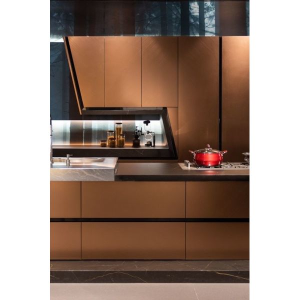 Fadior Rose Gold Modern Kitchen Cabinet with Geometric Lines and Stainless Steel Durability