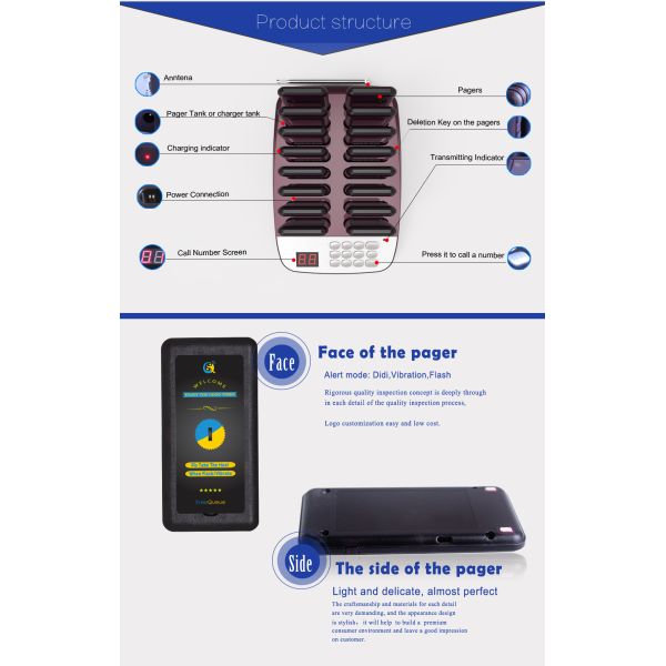 | Base size | 150*230*35mm | Pager size | 105*50*12mm |