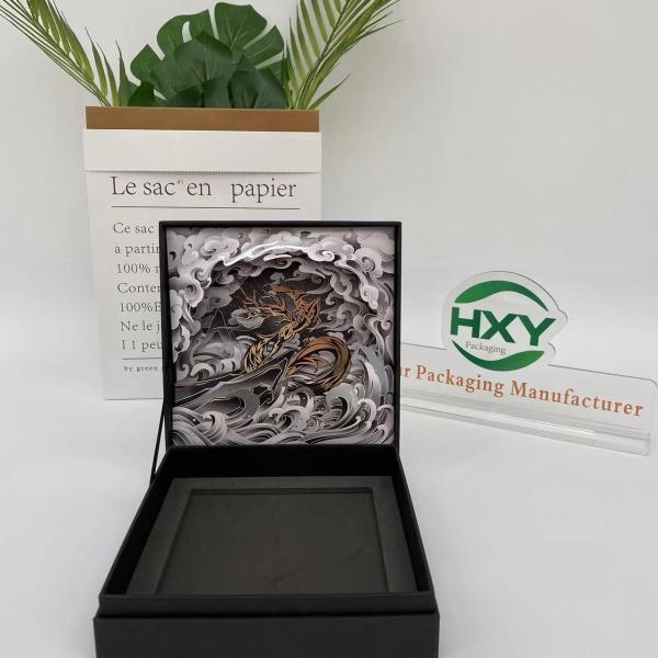 The interior of the box features intricate, ornate decorations designed to enhance the out-of-the-box experience and leave a lasting impression on your customers. This beautiful packaging solution is ideal for luxury items such as jewelry, watches, cosmetics and exclusive gifts. Each box can be fully customized to reflect your brand's unique identity with optional personalized logos, messages and other embellishments.