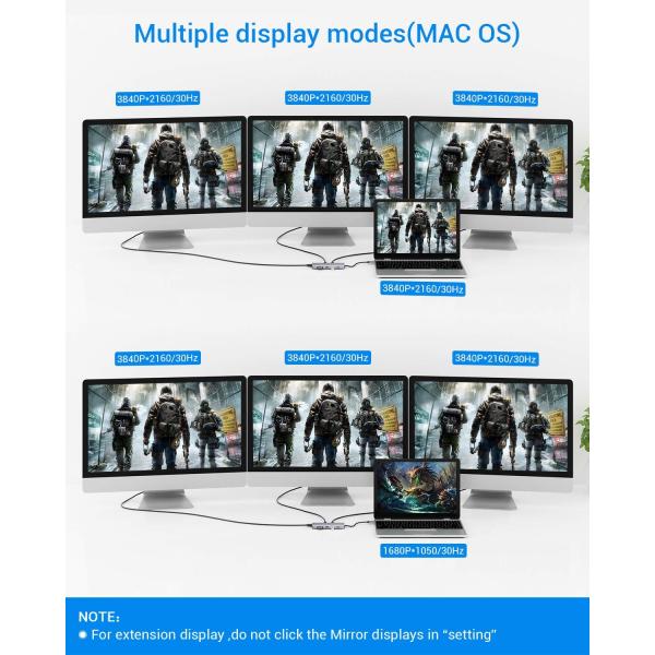 2 x HDMI 4K@60Hz output. 1 x DP 4K@60Hz output