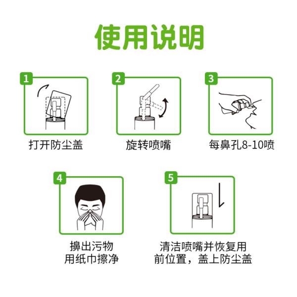3,Press the button 4-5 times, spray the atomized liquid into your nasal cavities, then blow the dirt out when it is intenerated;