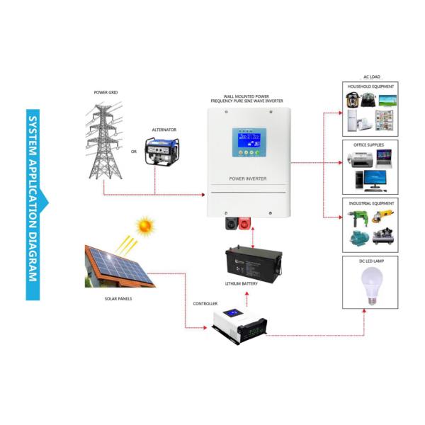 A wall-mounted off-grid inverter is a device used to convert DC (direct current) power from a battery or solar panels into AC (alternating current) power for running electrical appliances in off-grid or standalone power systems. Unlike grid-tied inverters, which are designed to work with a utility power grid, off-grid inverters are specifically designed for standalone power systems that are not connected to the grid.