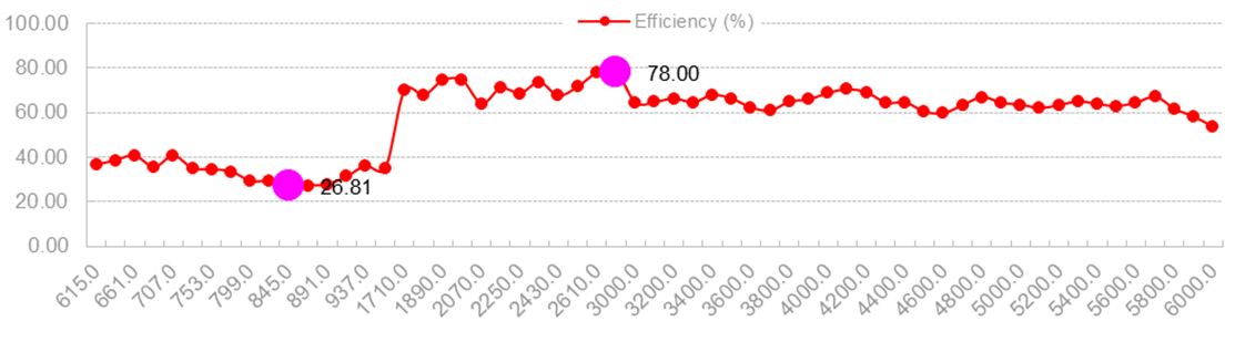 | Efficiency (%) | 59.66 | 63.31 | 66.79 | 64.23 | 63.40 | 61.91 | 63.27 | 64.90 | 63.68 | 62.76 | 64.39 | 66.90 | 61.43 | 57.97 | 53.46 |