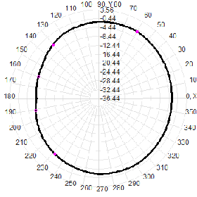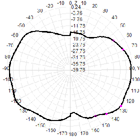 | Gain (dBi) | 4.59 | 1.96 | 0.72 | 0.87 | 1.04 | 1.97 | 2.32 | 2.64 | 2.99 | 3.67 | 4.33 | 3.83 |