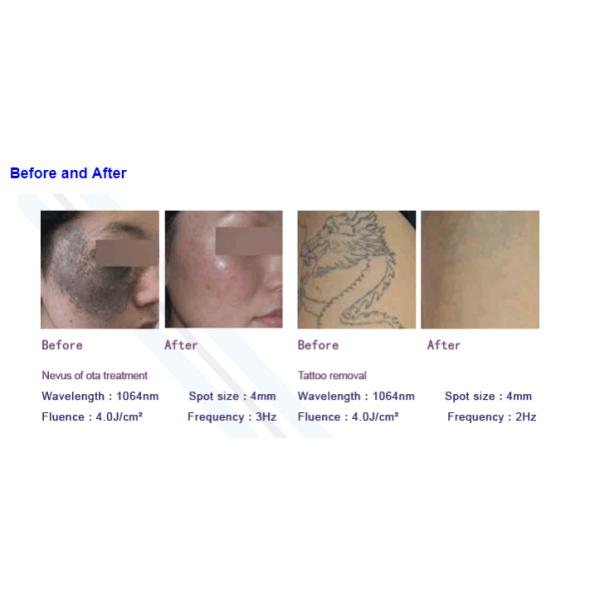 1064nm wavelength: get rid of freckles and yellow brown spot, eyebrow tattoo, failed eye line tattoo, tattoo, Birthmark and Nevus of Ota, pigmentation and age spot, nevus in black and blue, scarlet red, deep coffee and etc. deep color.