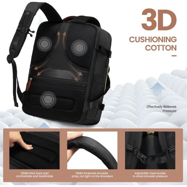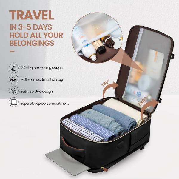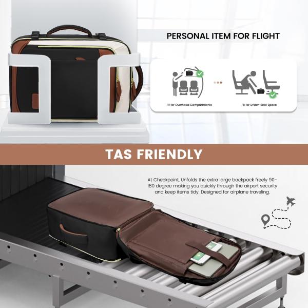 Glide through airports with ease! This travel backpack, sized at 18x14x8 inches, aligns with most airline personal item travel bag requirements. The 180-degree opening design for compartments expedites security checks, making your airport experience as smooth as your travels