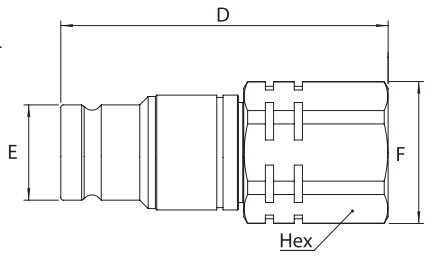 | Body Size | PARTNO. | Thread | D | E | F | HEX |