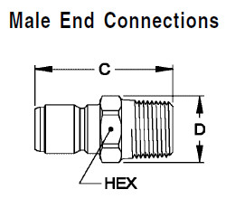 | Body Size | PARTNO. Brass | PARTNO. Steel | PARTNO. Stainless | Thread | C | D | HEX |