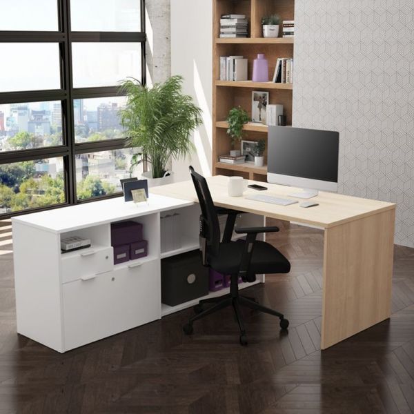 1.The L-shaped Wood Work Office Computer Desk is a stylish addition to workspace, crafted entirely from high-quality melamine board. Designed for functionality and aesthetic appeal, this desk offers ample space and customizable options to suit individual needs.