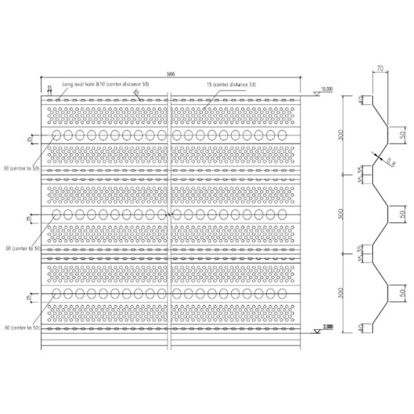 This product is known by various names such as Windbreaking Wall or Windbreaking Net. It is made up of corrugated metal plates with strategically placed holes in different patterns of distribution. Our team is capable of designing and manufacturing these plates in various thickness levels, colors, and dimensions to meet your specific requirements. These metal plates are coated with a high-quality powder coating and treated with anti-UV agents to ensure their longevity, all while maintaining a lower production cost.