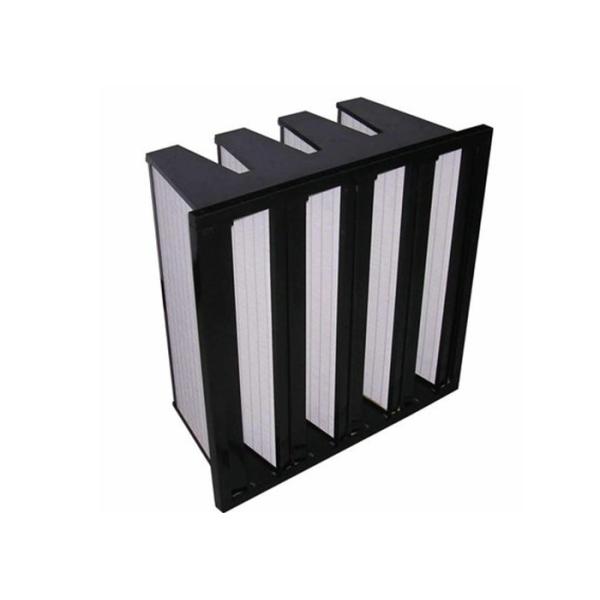 The V Bank Filter is constructed using fiberglass as the medium material, making it highly durable and long-lasting. It is available in various filtration classes, including F6, F7, F8, F9, H10, H11, H12, H13, and H14. This makes it suitable for a range of applications, including air conditioning systems, cleanrooms, hospitals, and laboratories.