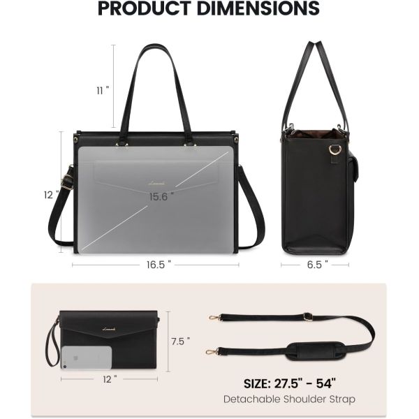 • Detachable Magnetic Clutch Purse: 2-in-1design enhance your work tote bag's aesthetic with a functional front envelope clutch that doubles as a decorative accessory. The detachable magnetic clutch transitions smoothly from being an integral part of the laptop tote bag for women to a standalone fashionable wallet, clutch, or wristlet, offering convenience and versatility for your day-to-day styling.
