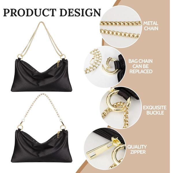 Women’s Satin Evening Bag Clutch Purse Handbag for Women Wedding Shoulder Bag with 2 Chains for Formal Cocktail Party
