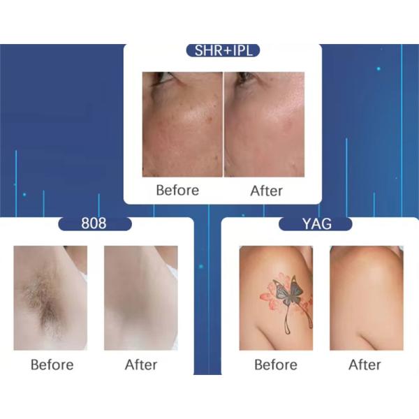 | Technology | 808 Diode laser+IPL+Nd Yag Laser |
