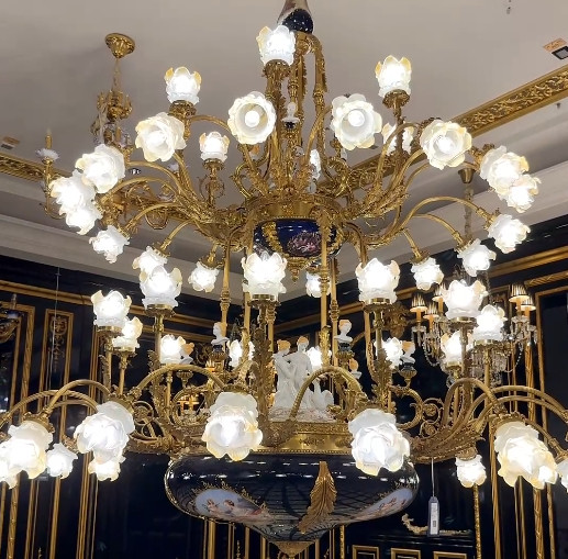 Perfect for high-end venues, this large pendant foyer lighting is an ideal choice for venues that seek both style and sophistication. It can elevate the ambiance of art galleries, opera houses, museums, and historic buildings, where its European-inspired design complements the architectural beauty of the space. Additionally, the large gold foyer chandelier is a great addition to private yachts, exclusive clubs, and other luxurious settings, where its romantic golden glow creates an alluring and elegant ambience. The chandelier's design blends seamlessly with spaces featuring ornate murals and intricate details, making it a versatile and impactful choice for any prestigious venue.