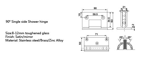 | Product Name: | Stainless steel frameless 90 degree bathroom glass shower hinge |