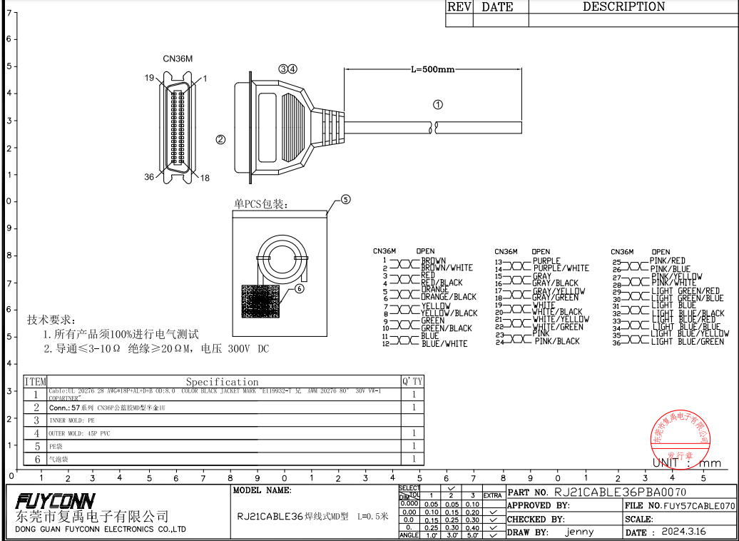 SCSI Cable assembly with high density connector with 1.27mm (0.050-inch) spacing Conforms to the American national standards institute (ANSI) specification Choice of bracket configurations includes: latch only or without rails and latch All plastic type available in 14, 20, 26, 36, 50, 50, 68,100 positions Insulator is made of polyester resin and glass fiber reinforced (UL 94-0) providing superior heat and chemical resistance Application to miniaturized electronic equipments.