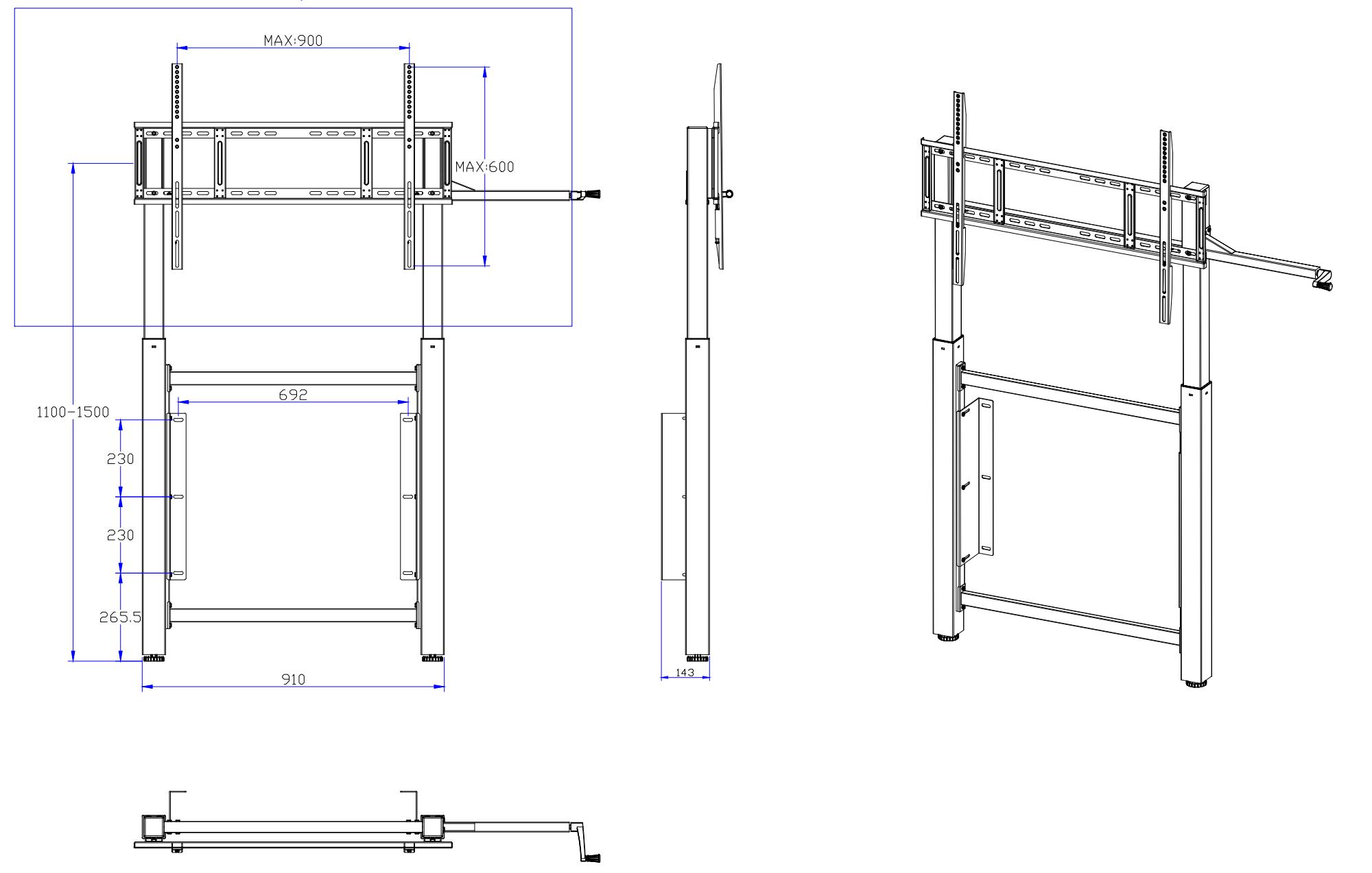 In addition, its height range is 50cm, giving you enough flexibility to adjust the height of your interactive panel to suit your needs. This ensures that you can easily adjust the stand to suit your height and comfort level, making it a great solution for people of all heights.
