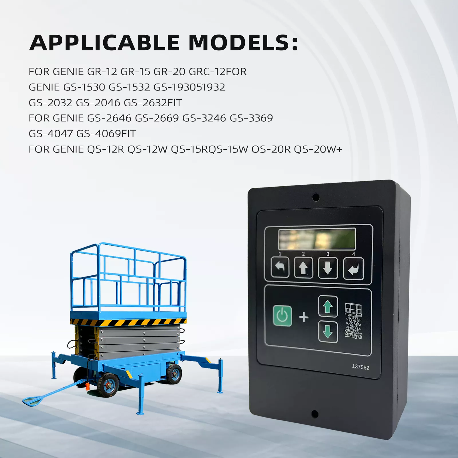 | Used For: | Genie scissor lift GS-1530 GS-1532 GS-1930 GS-1932 GS-2032 GS-2046 GS-2632 GS-2646 GS-2669 GS-3246 GS-3369 GS-4047 GS-4069 |