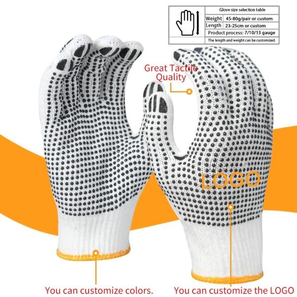 PVC Black Double-Sided Dotted Cotton Knitted Work Gloves Construction / Hand Protection / Anti Slip And Durable Glov