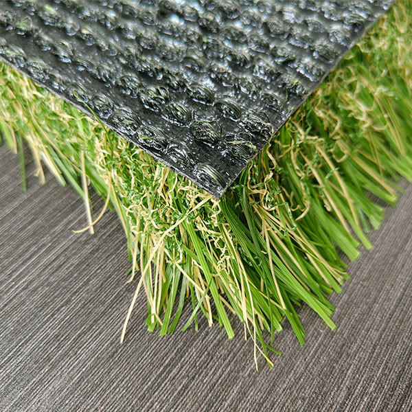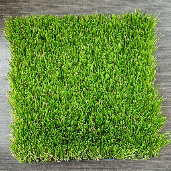 The grass filament shape of this product is large wave shape, with a stitch rate of 115needles per meter, which is the number of grass clusters in meters in the longitudinal direction after the lawn is unfolded. The guage, which is the distance between every two columns in the longitudinal direction after the lawn is unfolded, is 3/8 feet. The above two values determine the density of the finished product, which is the number of grass clusters in square meters. The density of this product is 12075 stitches per sqm.