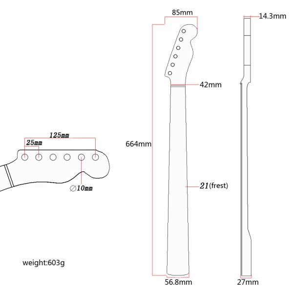The Alnicov GS26A Guitar Neck is an excellent choice for guitarists who are looking for a reliable and durable guitar neck. This product is designed to be used with TL guitars, making it perfect for guitar players who prefer this type of guitar. The neck's width at the heel, which measures 56.8 MM, ensures that it will fit comfortably into the guitar body.