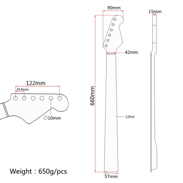 The width of this guitar head measures 15 MM / 0.59“, ensuring a comfortable grip and easy playability. The tuner holes measure 10mm, allowing for easy installation and compatibility with most types of tuners.