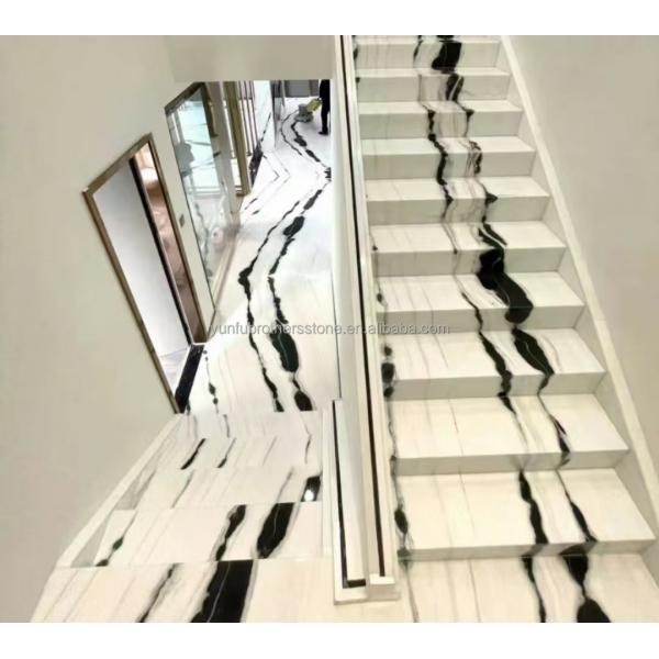 Buy Modern Hotel Staircases Brothers Stone Panda White Marble Treads and Risers Anti Slip at wholesale prices