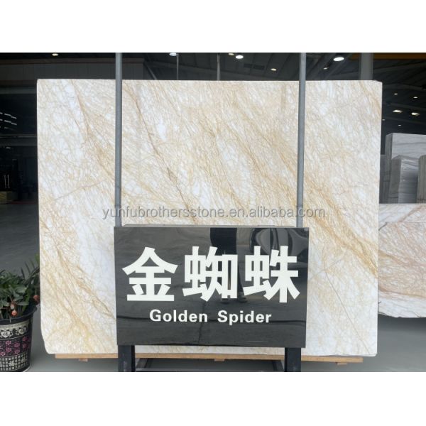 Buy Polished Spider Golden Marble Slab Ideal for Modern Villa Wall Floor Graphic Design at wholesale prices