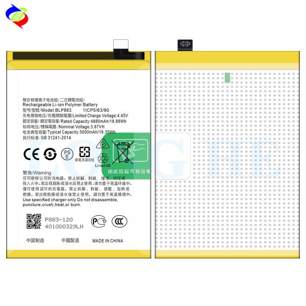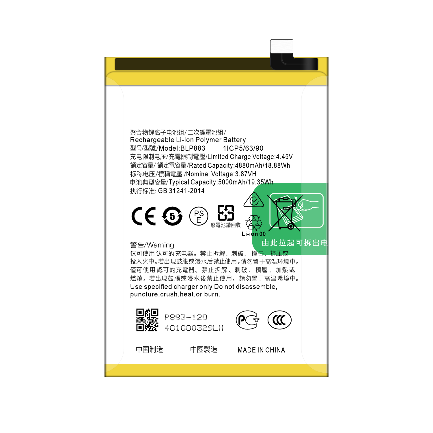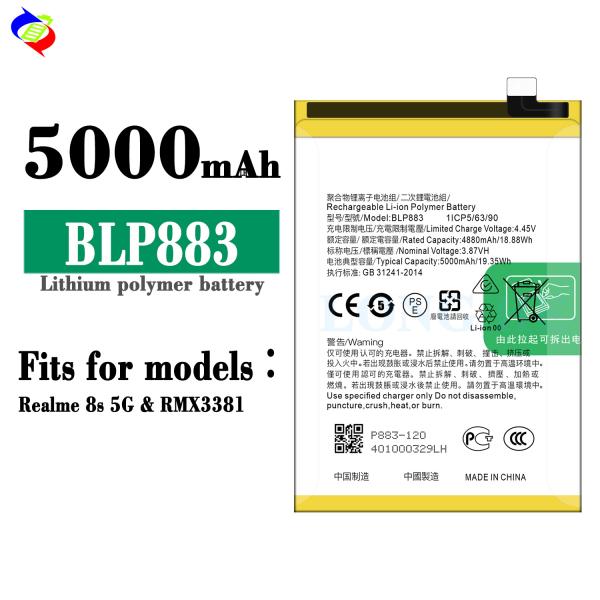 Introducing the BLP883 Rechargeable Battery, specifically designed for the OPPO Realme 8S 5G (RMX3381). With a robust capacity of 5000mAh and a voltage of 4.45V, this battery ensures your device stays charged and ready for action.