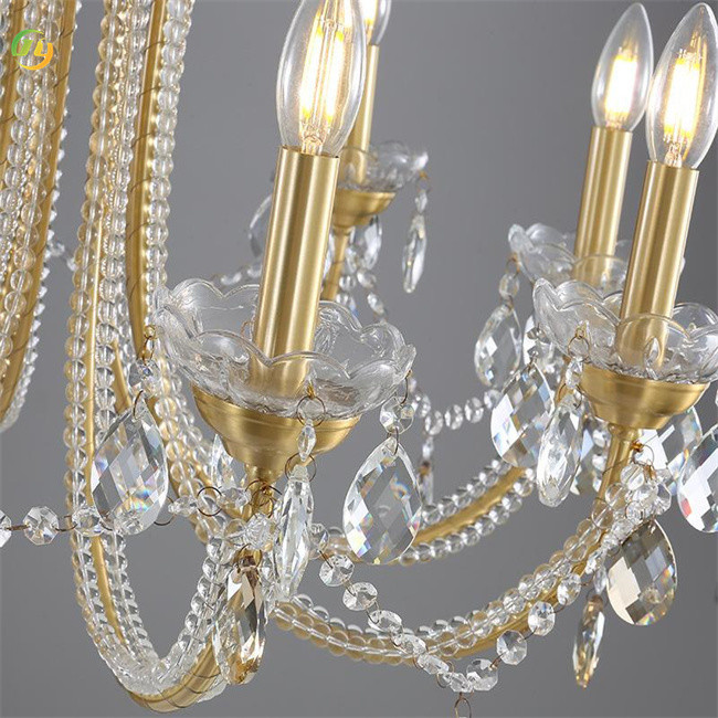 Exquisite High-end Art Shiny Light Luxury Modern Design Fashion Retro This is a glass chandelier with a modern style and a very artistic feel. The golden copper is wrapped with bright and clean glass, making the overall color of this chandelier luxurious and textured.