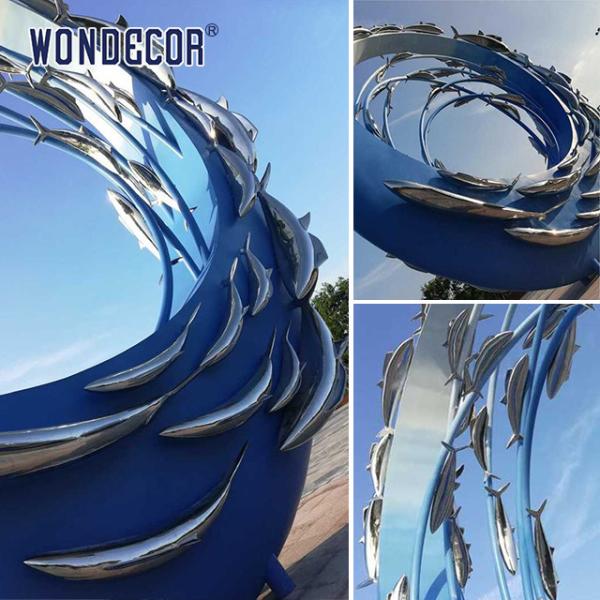 | product name | Large outdoor metal art abstract marine animal swimming fish school stainless steel sculpture |