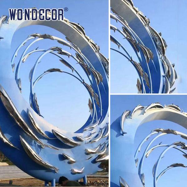 | name: | Large outdoor metal art abstract marine animal swimming fish school stainless steel sculpture |