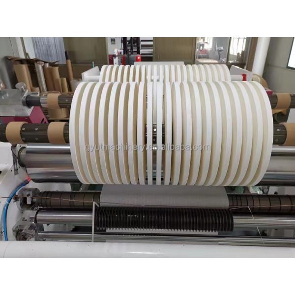 UT-A automatic paper slitting and rewinding machine adopts integral casting technology, which is sturdy and durable, stable operation of equipment. The machine adopts the central winding method and automatic tension control; the whole computer touch screen is controlled and adopts speed regulation to maintain smooth running during speeding; the machine can slit BOPP, PET, plastic film, laminate materials for various printing and packaging, Single-layer aluminum foil, candy paper, computer paper, cellophane, cigarette paper, and other kind of materials, etc.