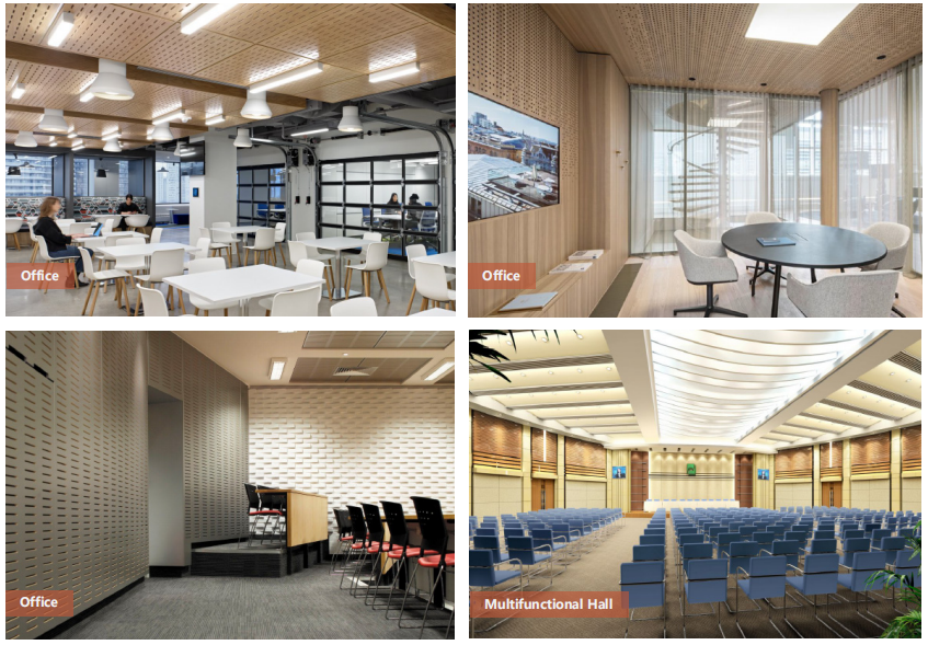 Art acoustic panels are versatile solutions ideal for various settings that demand high acoustic performance and artistic aesthetics. They are perfectly suited for offices, multifunctional halls, conference rooms, lecture halls, art centers, opera houses, gymnasiums, hotels, home theaters, and other places where superior sound quality and visual appeal are paramount. These panels not only enhance sound absorption and clarity but also elevate the aesthetic ambiance of any space, making them a preferred choice for both functional and decorative purposes. Whether in a professional setting or a cultural venue, art acoustic panels seamlessly blend performance with design, providing an unparalleled acoustic experience.