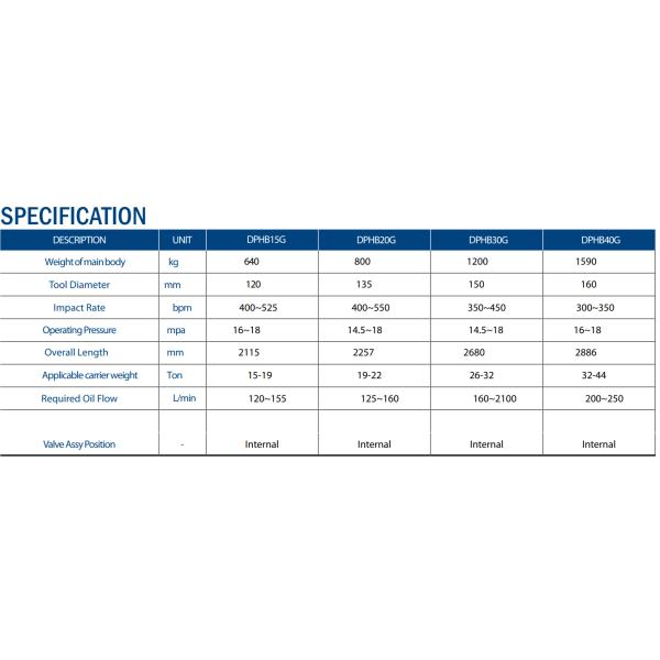 | Impact Rate | bpm | 400~525 | 400~550 | 350~450 | 300~350 |