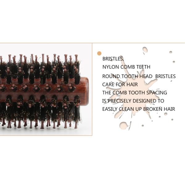 Natural Styling and Anti Static Set of 3 Round Hair Curling Combs with Wooden Handle