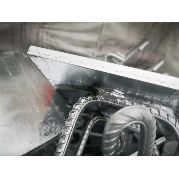 The result is a steel surface on the face of the concrete onto which a steel structure is welded.