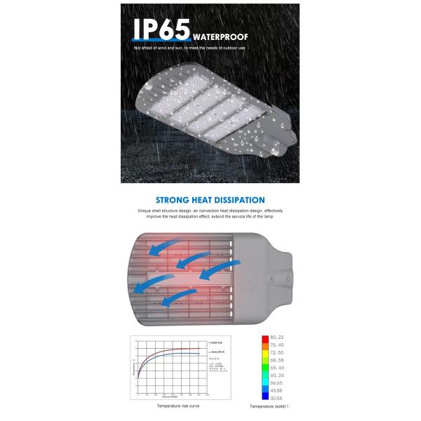 Equipped with high light efficiency LED chips, the light efficiency is up to 130lm/W. Compared with traditional lamps, this LED street light has better light efficiency and color rendering, creating a clear and comfortable visual environment for pedestrians and drivers.