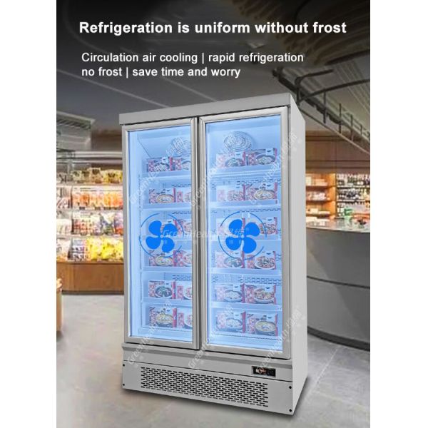 The door of this commercial door freezer is made of low-e glass, which not only provides a clear view of your products but also offers insulation to keep the cold air inside. The door closing way is auto spring back, which ensures that the door closes properly every time, preventing any potential loss of cold air and energy waste. The self-closing door freezer is also equipped with a lock to ensure the safety and security of your products.