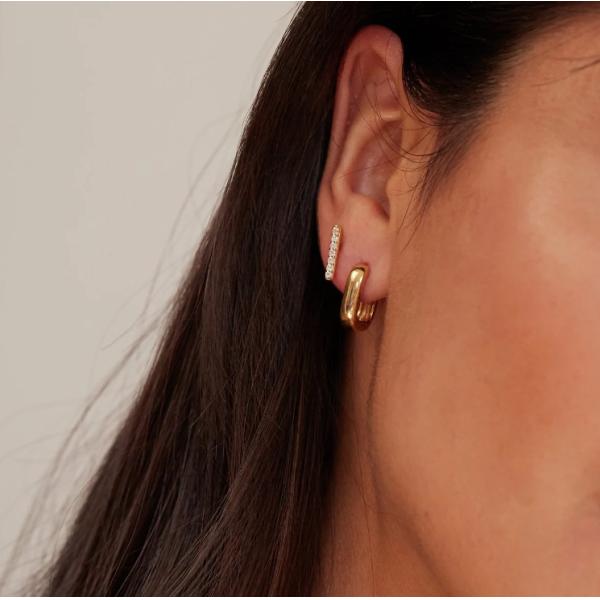 Elegant 18K Gold Plated S925 Silver Thick Squared Hoop Freshwater Pearl Drop Earring
