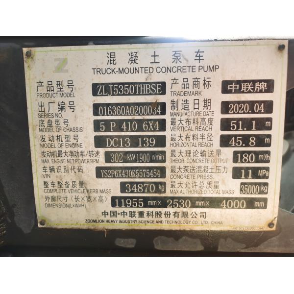 This 2020 ZOOMLION ZLJ5350THBSE concrete pump truck represents a premium blend of engineering excellence and practical functionality, designed to meet the rigorous demands of modern construction projects. With its advanced specifications—including a 52-meter placing height, 180 m³/h theoretical output, and robust Scania chassis—this machine is an ideal choice for contractors seeking efficiency, reliability, and versatility in concrete placement. Below is a detailed overview of its key features and applications.