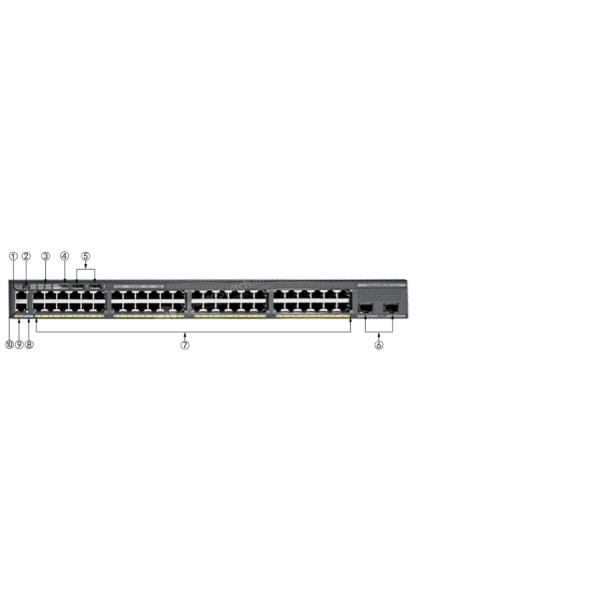 | ② | Mode button | ⑦ | 48 x 10/100/1000 ports |