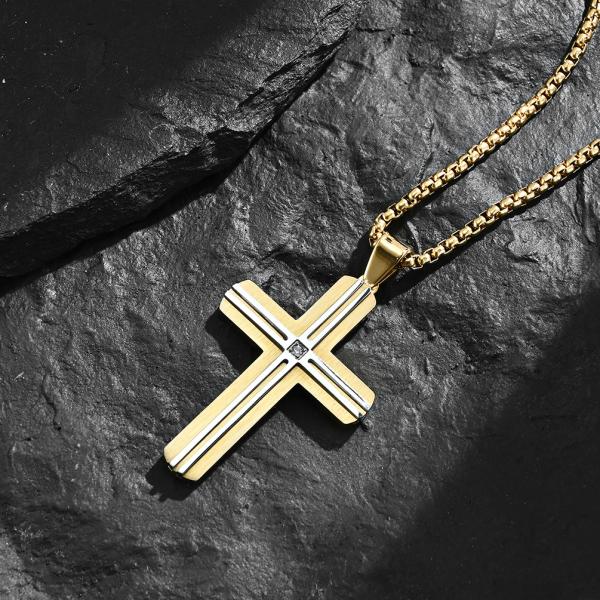 Blue and Gold Metal Prayer Choker for Men Stainless Steel Link Chain Necklaces Fine Jewelry Anniversary Occasion
